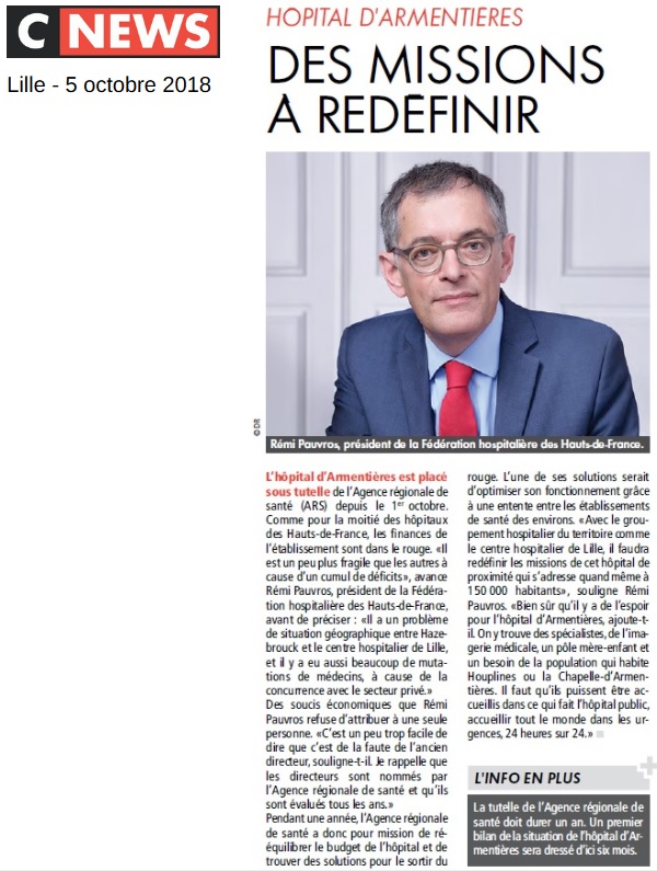 CH Armentières – Interview de Rémi Pauvros sur Grand Lille TV et CNews