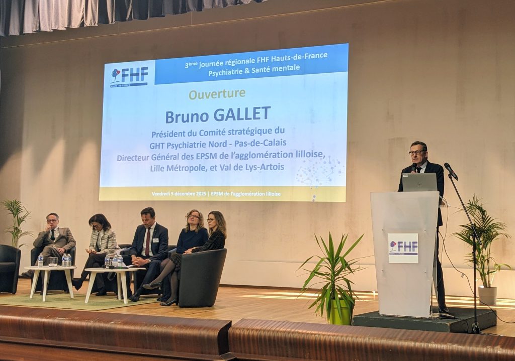 Ouverte par Bruno GALLET, Président du Comité stratégique du GHT Psychiatrie NPDC et Directeur Général de l’EPSM de l’agglomération lilloise, l’EPSM Lille-Métropole et l’EPSM Val de Lys-Artois, Dr Pauline FOURNIER, Présidente de la CME de l’EPSM de l’agglomération lilloise, Frédéric CHEREAU, Président de la FHF Hauts-de-France, Zaynab RIET, Déléguée générale de la FHF, et Hugo GILARDI, Directeur Général de l’ARS Hauts-de-France, cette journée animée par Mélanie VIATOUX, Déléguée régionale de la FHF Hauts-de-France, a ainsi été l’occasion de montrer comme la région Hauts-de-France sait conjuguer excellence clinique, innovation technologique, participation citoyenne et intelligence territoriale.
